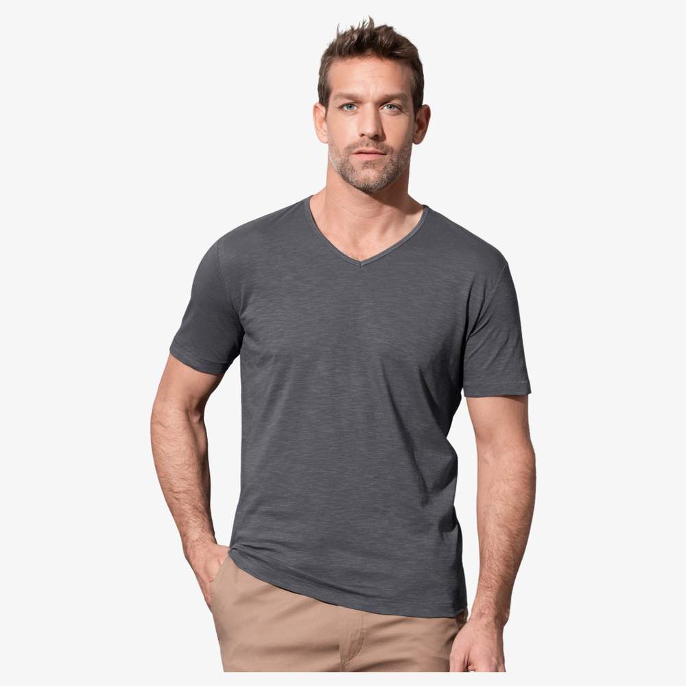 Shawn slub v-neck Tee shirt coton flammé st9410