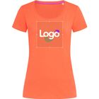 T-shirt près du corps pour femmes, longueur moderne, en mélange coton-élasthanne agréable et doux, avec bande de propreté contrastante. Coton peigné élastique avec élasthanne, sans étiquette de marque dans le cou. Jersey simple « full feeder », couture épaules renforcée, col fin dans la même matière, encolure ample, bande de propreté contrastée, coutures latérales, petite étiquette de taille dans le cou, étiquette d'entretien dans la couture latérale. Composition : 95% coton peigné ring-spun, 5% élasthanne; jersey simple «full feeder» (GYH: 82% coton, 14% viscose, 4% élasthanne). Possibilité de personnalisation pour répondre à vos besoins spécifiques.