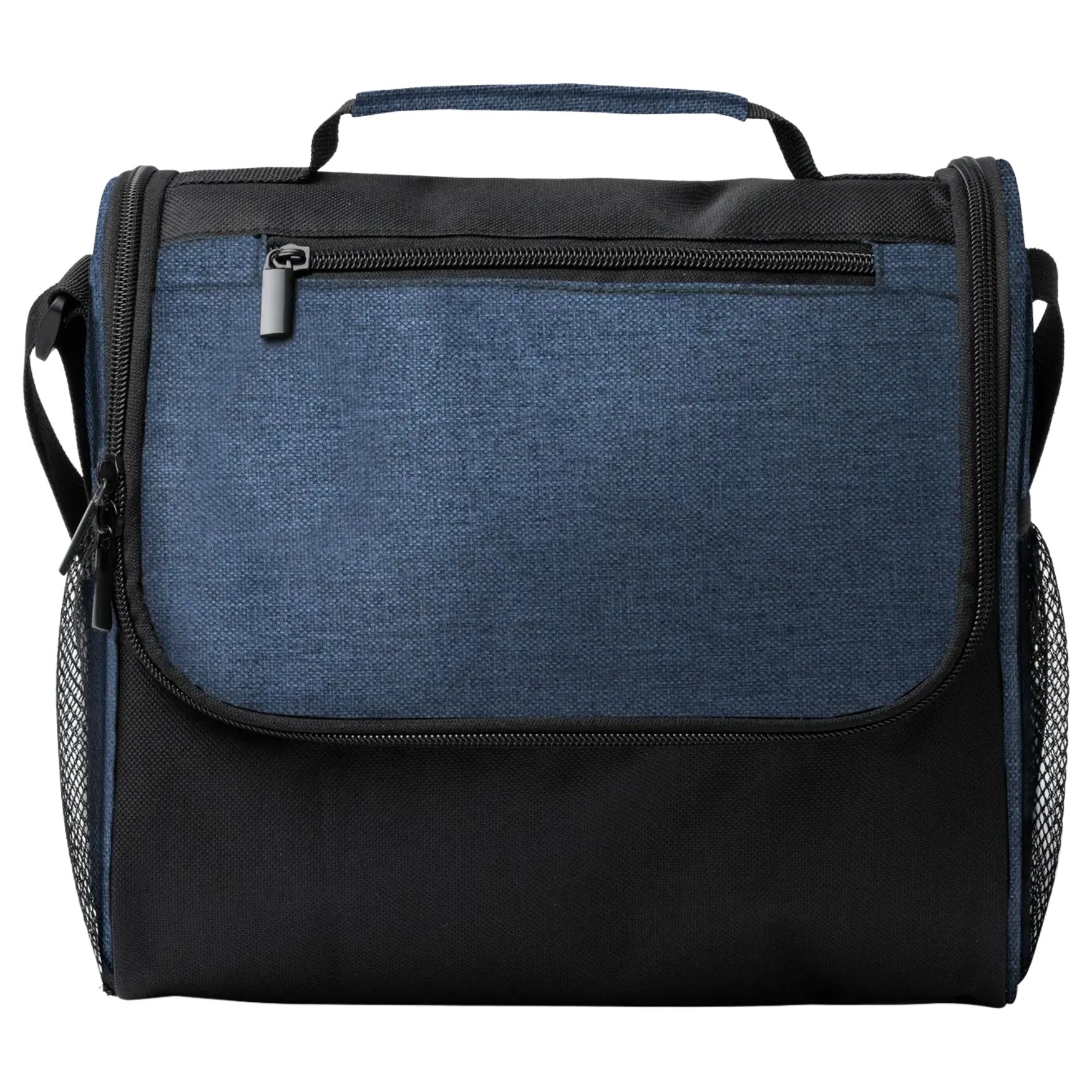 Le sac isotherme GAVINS est conçu en RPET 600 D avec une poche principale à intérieur isotherme. Il comprend une poche avant avec fermeture à glissière, deux poches latérales et une sangle de transport ajustable.