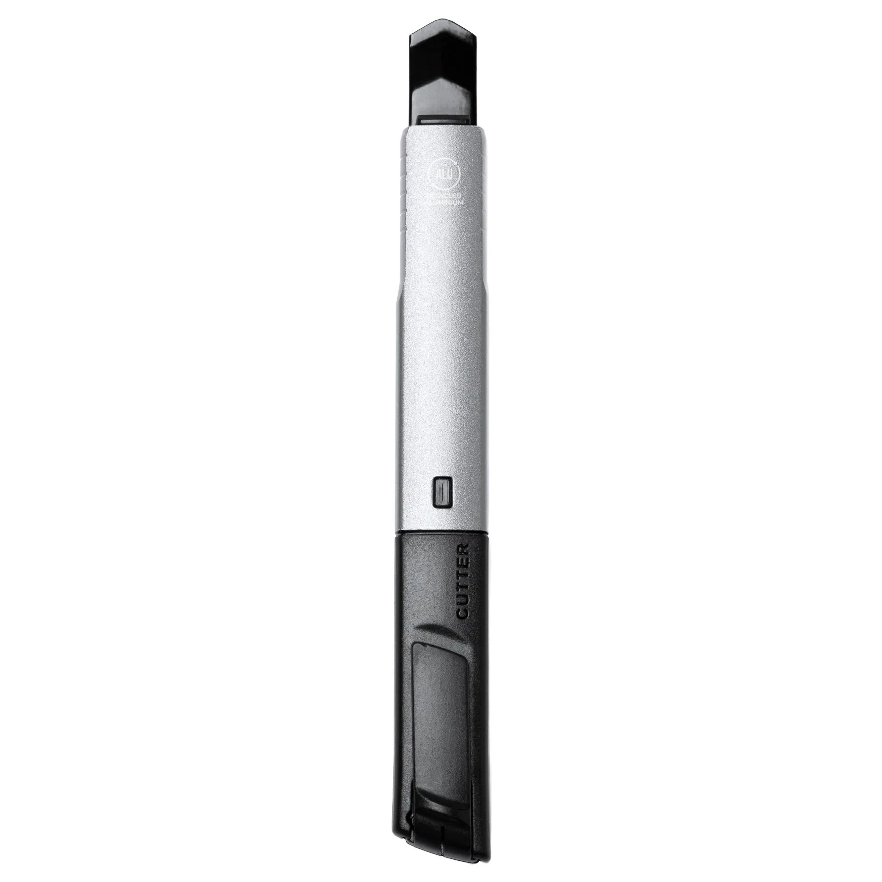 Le RAZER est un cutter avec lame en acier inoxydable et corps en aluminium recyclé. Il dispose d'un capuchon amovible permettant de couper et régler la lame. La présentation se fait en boîte éco-conçue.
