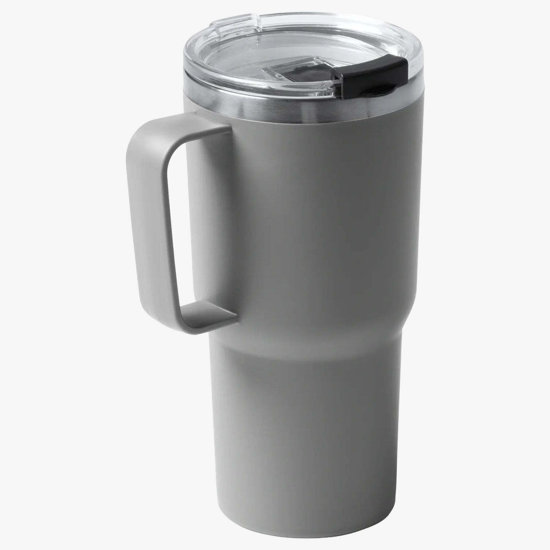 Le mug double couche combine acier inoxydable 304 et polypropylène. Il inclut un couvercle doseur adapté à une capacité de 600 ml.
