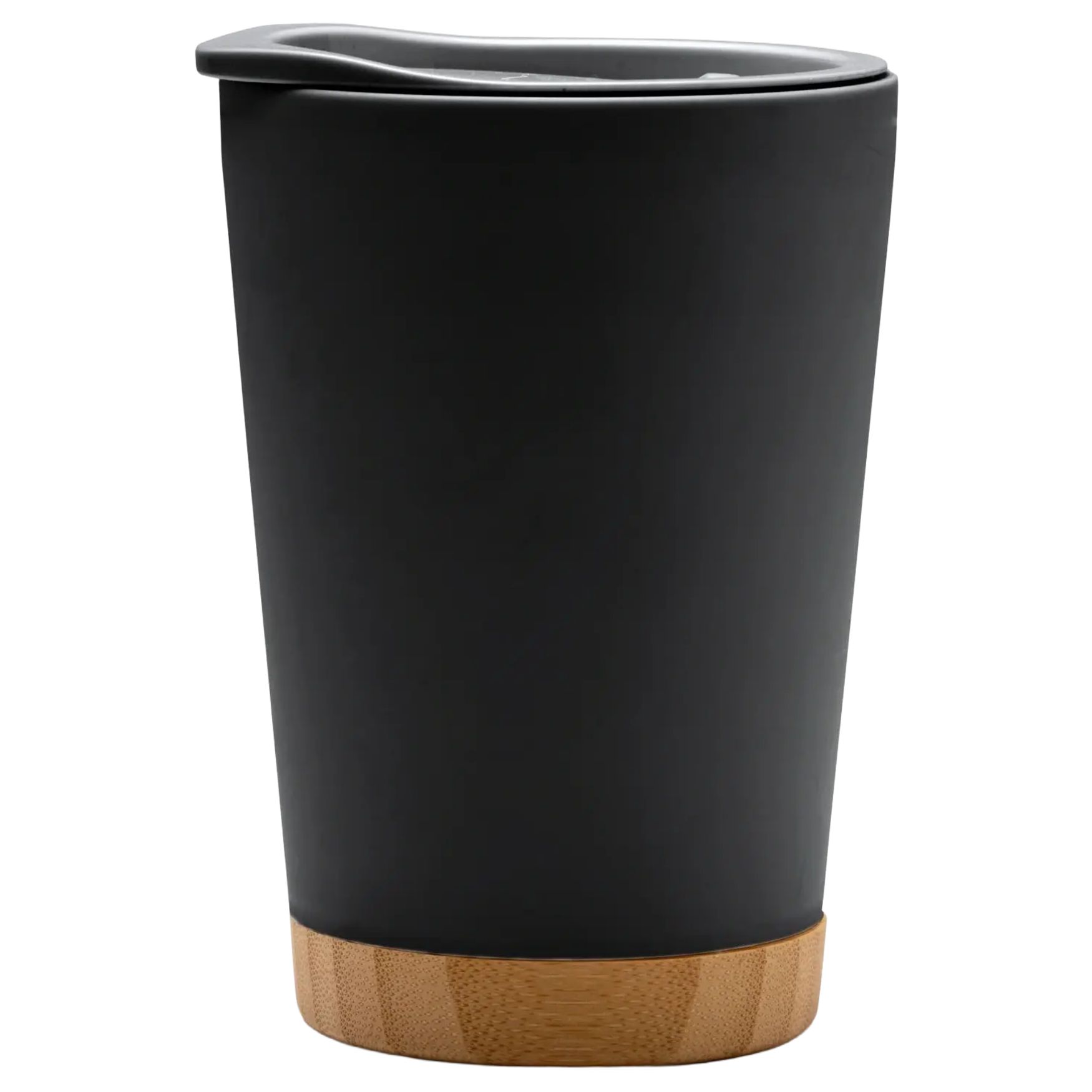 Le gobelet double paroi MIRIN associe un corps en polypropylène recyclé et une base en bambou. Il est équipé d'un couvercle doseur et offre une capacité de 290 ml.