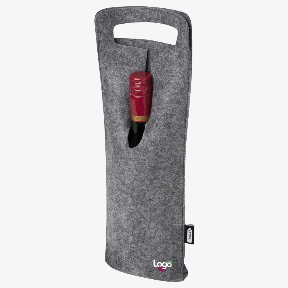 Sac pour bouteille de vin en feutrine recyclée, douce et durable, au design épuré et muni de poignées pour faciliter le transport. Capacité: 75cl. Dimensions : 15 x 42 cm. Composition : 100% polyester recyclé. Ce sac offre une solution pratique et écologique pour transporter vos bouteilles de vin. Il est également personnalisable, permettant l'ajout de votre logo ou de vos éléments graphiques pour une visibilité accrue de votre marque.