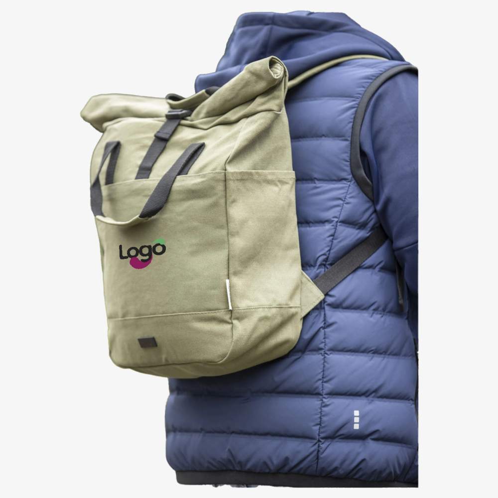 120678 - Sac à dos pour ordinateur portable joey de 15l en toile recyclée 15pouces avec dessus enroulable personnalisé 120678 - olive