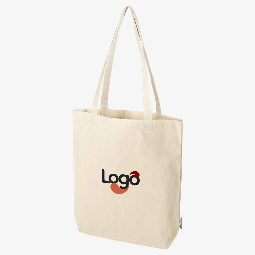 Le sac shopping Florida à fond large est fabriqué à partir de coton recyclé, offrant une option responsable et durable pour vos besoins quotidiens. Son large fond offre un espace supplémentaire pour vos objets essentiels, que ce soit pour une virée shopping ou une sortie décontractée. Ce sac est également personnalisable, vous permettant d'ajouter votre logo ou visuel pour une communication efficace. Longueur de la poignée: 30cm. Volume: 10litres. Dimensions : 38 x 9 x 42 cm. Composition : 100% coton.
