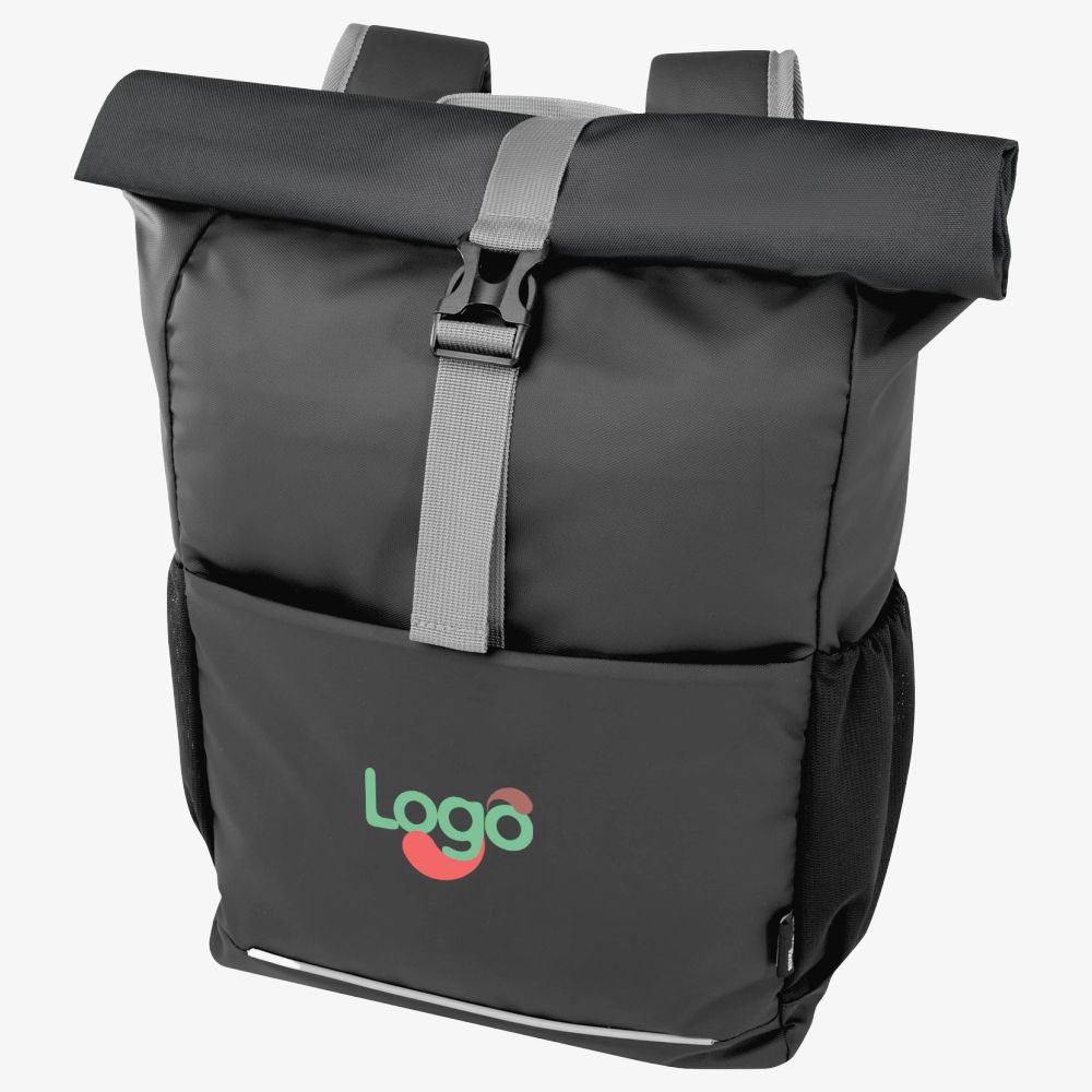 Sacoche de vélo à roulettes résistante à l'eau, fabriquée à partir de matériaux recyclés. Elle comporte un compartiment matelassé pour ordinateur portable de 15 pouces, de multiples poches de rangement, une fermeture réglable par crochets et boucles pour faciliter l'installation sur divers vélos, et des bandes réfléchissantes pour une meilleure visibilité. Les matériaux recyclés comprennent le tissu principal, la doublure, la sangle et les fermetures zippées. Capacité : 20 litres. Sans PVC. Dimensions : 30 x 14 x 57 cm. Composition : polyester recyclé. Possibilité de personnalisation en broderie.