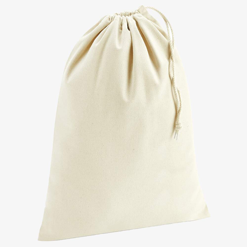 Ce sac en coton polyvalent est disponible en quatre tailles différentes. Il dispose d'un cordon de fermeture pour un rangement simple. Fabriqué à partir d'un mélange de coton recyclé pré-consommation et de polyester recyclé post-consommation, ce sac contribue à un avenir plus durable.