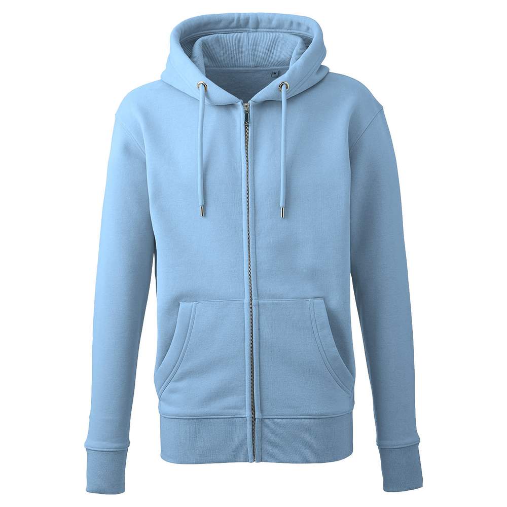 Felpa con cerniera per uomo in tessuto pelle di pesca al tatto morbido. Cappuccio in maglia a coste. Chiusura a zip e cordoni senza nickel. Interno in pile grattugiato. Finiture ad ago doppio di alta qualità. Polsini costolati tagliati e cuciti due in uno. Tasche kanguro. Etichetta della taglia dello stesso colore.