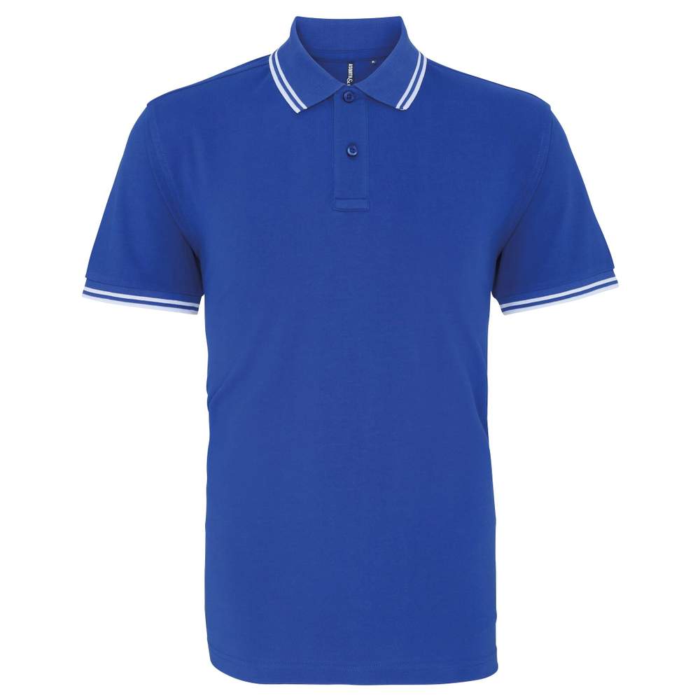 Polo di taglio classico con passamano contrastante sul colletto e sui polsini. Bottoniera a due bottoni. Maniche corte. Fenditure laterali. Colletto e polsini in maglia.