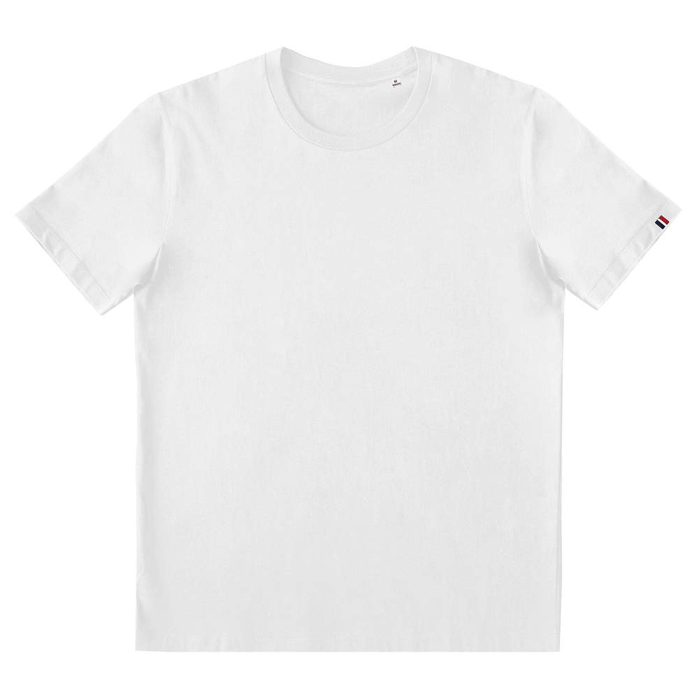 T-shirt unisex made in France. Collo tondo con striscia di pulizia. Taglio confortevole. Modello taglia cucito. Dettaglio tricolore nella parte inferiore del corpo. Composizione: 100% cotone pettinato proveniente da agricoltura biologica. Bordino 100% cotone pettinato proveniente da agricoltura biologica.