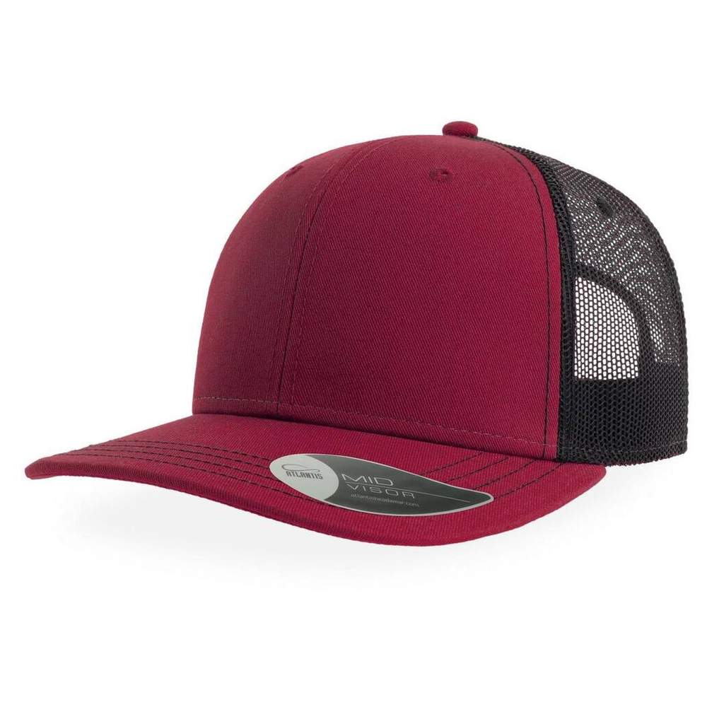 Cappello stile trucker composto da sei pannelli. Presenta cuciture contrastanti sulla visiera e sul pannello frontale, oltre a quattro cuciture sulla visiera. La chiusura è realizzata in PVC per un facile aggiustamento. La visiera è pre-curvata per una vestibilità confortevole. La composizione include un pannello frontale e una visiera in 100% cotone sergé chino, mentre i pannelli laterali e posteriori sono in 100% poliestere.