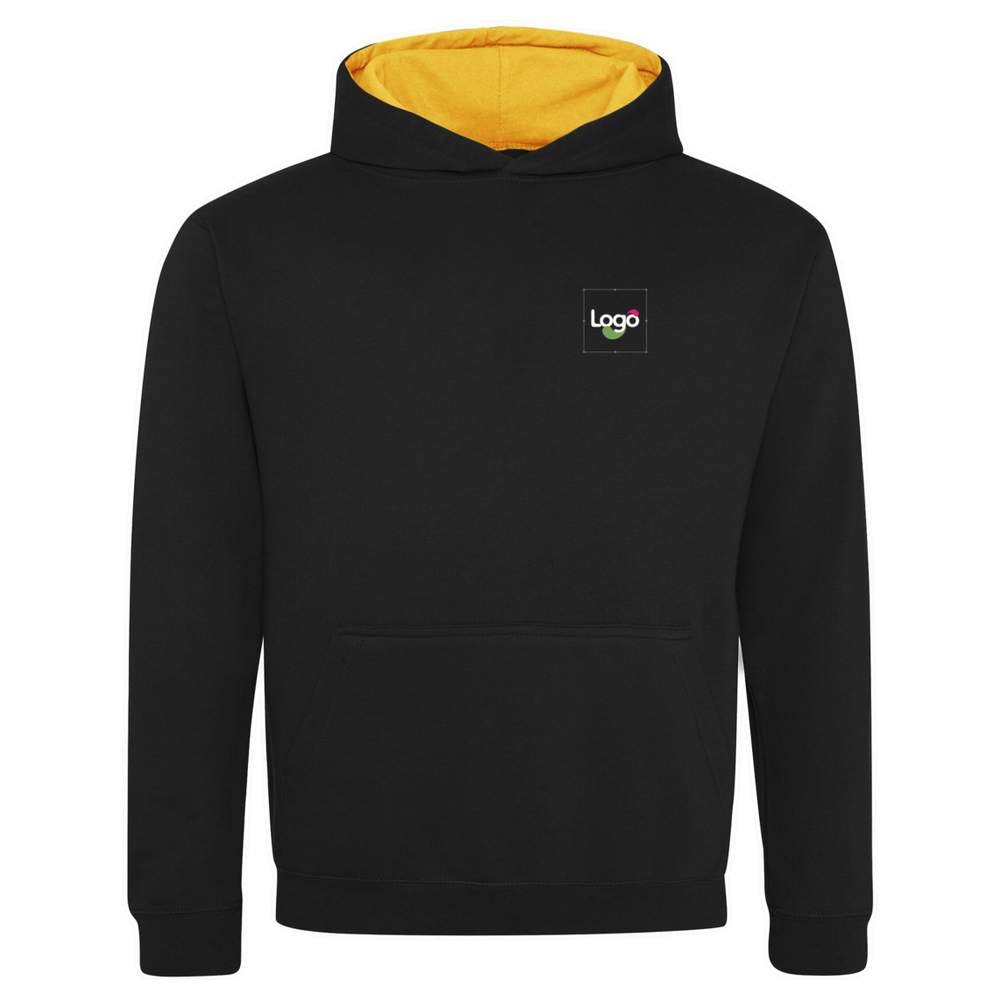 Questa felpa con cappuccio contrastata per bambini offre un comfort ottimale e uno stile alla moda. Senza cordino, rispetta le norme di sicurezza europee. La sua tasca a marsupio e gli aperture per il cavo delle cuffie la rendono un indumento pratico e funzionale. È perfetta per essere personalizzata in ricamo o tramite stampa del vostro logo, per una maggiore visibilità del marchio o per un regalo unico. Composizione: 80% cotone, 20% poliestere.