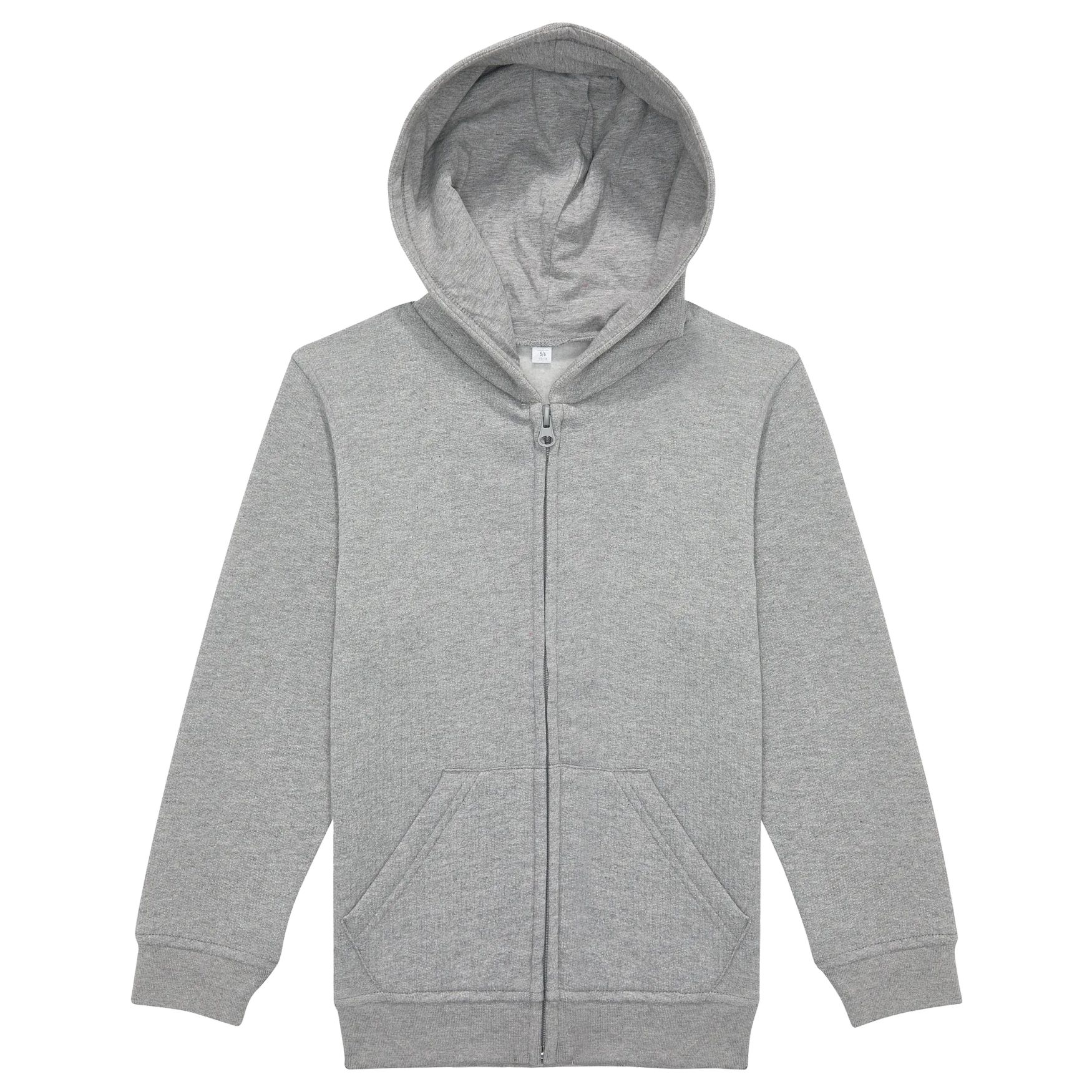 Il sweat a cappuccio bambino con zip presenta un interno in pile spazzolato con cuciture laterali e un taglio classico casual. La parte frontale è in 100% cotone favorendo la stampabilità e offrendo una texture morbida. Il cappuccio è foderato in jersey senza cordino di regolazione. Polsini e bordo inferiore sono a coste 1x1 con elastan. Senza etichetta. Composizione principale: 80% cotone; 20% poliestere.
