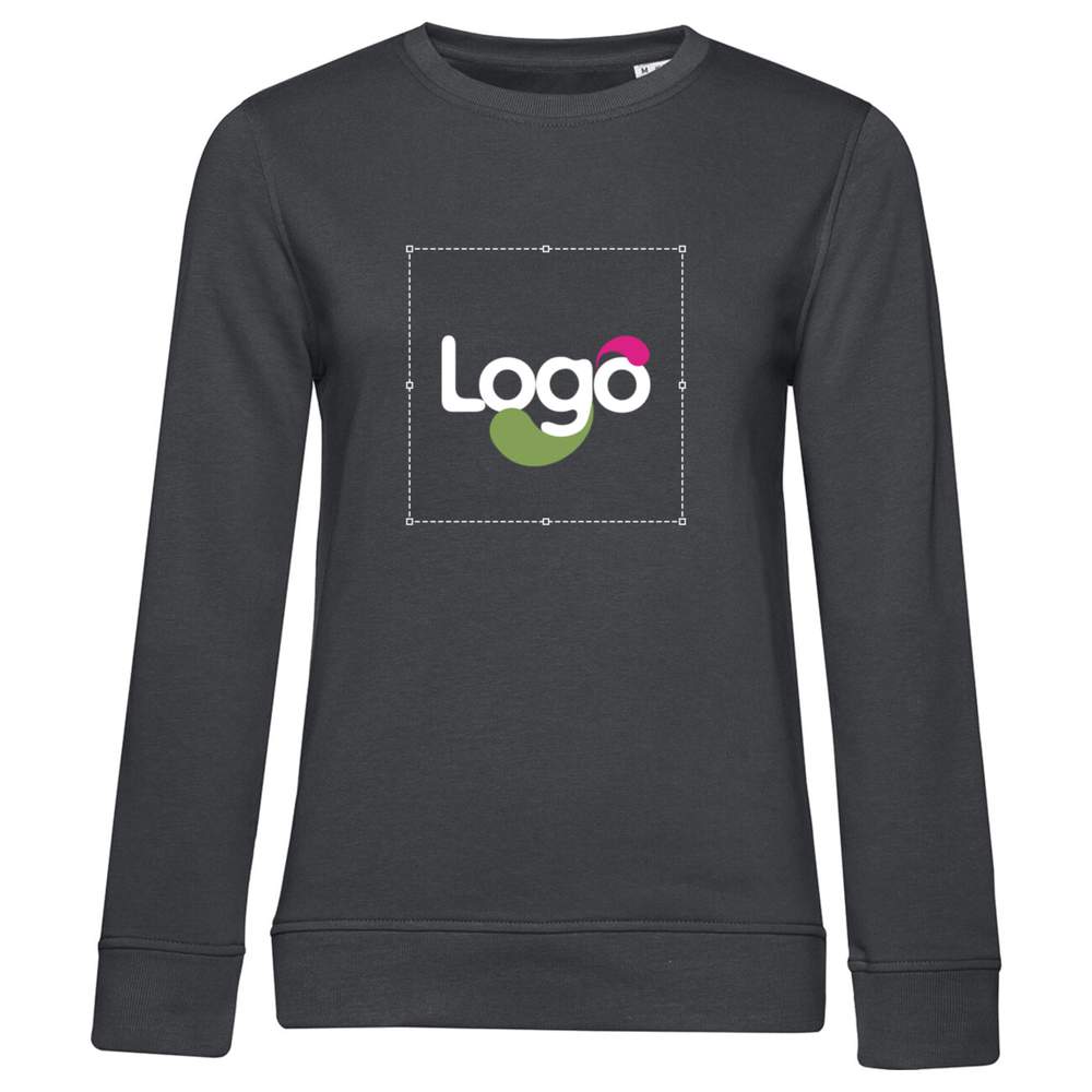 Felpa collo rotondo organica o organica in conversione per donna. French Terry: interno non rasato. Senza etichetta del marchio. Etichetta visibile nel collo « Hi! I'm Organic ». Cuciture laterali. Taglio femminile. Collo, polsini e orlo con coste a coste. Maniche dritte. Striscia di pulizia a chevron. Esterno in 100% cotone. Interno non rasato. Tessuto resistente e tocco ultra morbido. Possibilità di personalizzazione in ricamo o con il tuo logo.