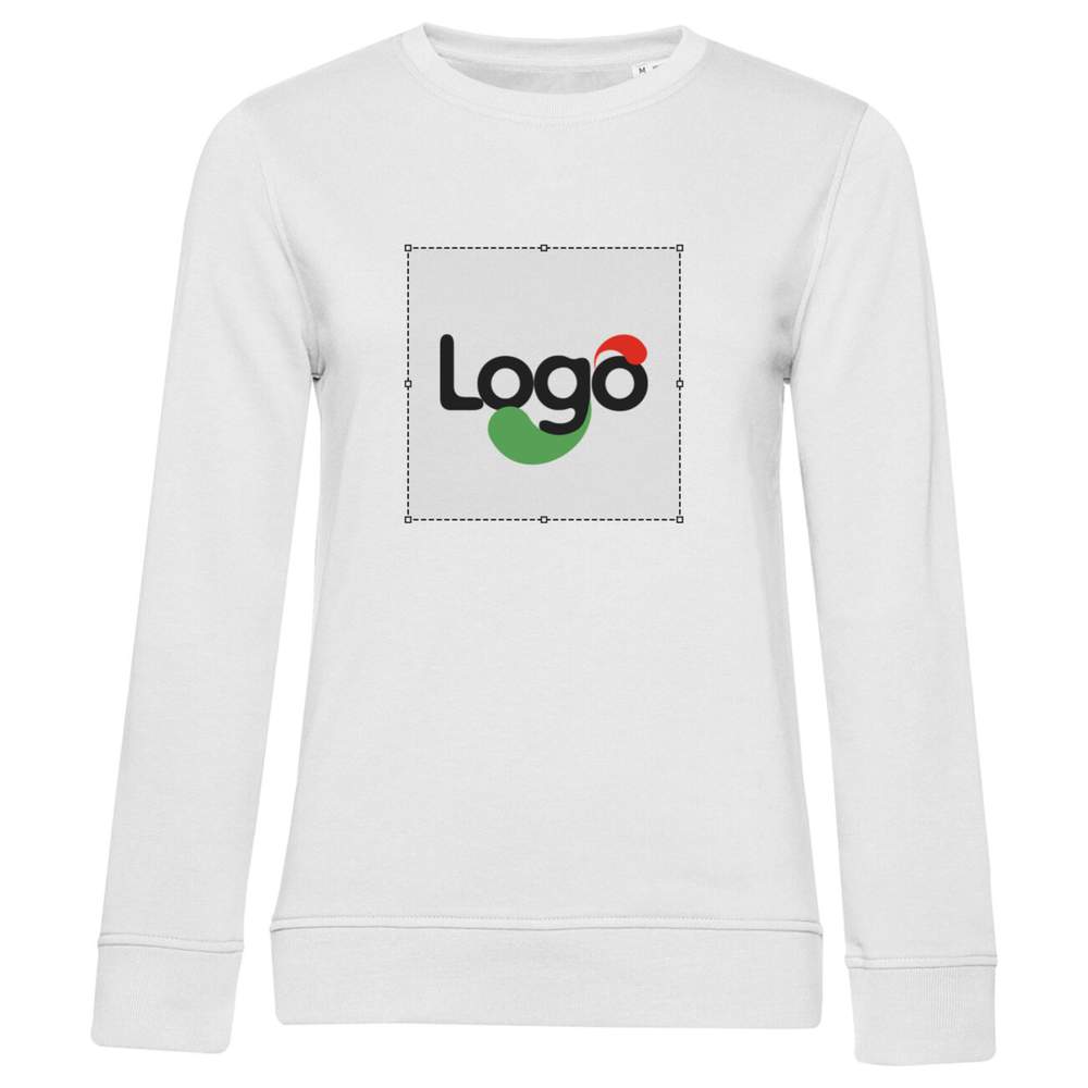 Felpa collo rotondo organica o organica in conversione per donna. French Terry: interno non rasato. Senza etichetta del marchio. Etichetta visibile nel collo « Hi! I'm Organic ». Cuciture laterali. Taglio femminile. Collo, polsini e orlo con coste a coste. Maniche dritte. Striscia di pulizia a chevron. Esterno in 100% cotone. Interno non rasato. Tessuto resistente e tocco ultra morbido. Possibilità di personalizzazione in ricamo o con il tuo logo.