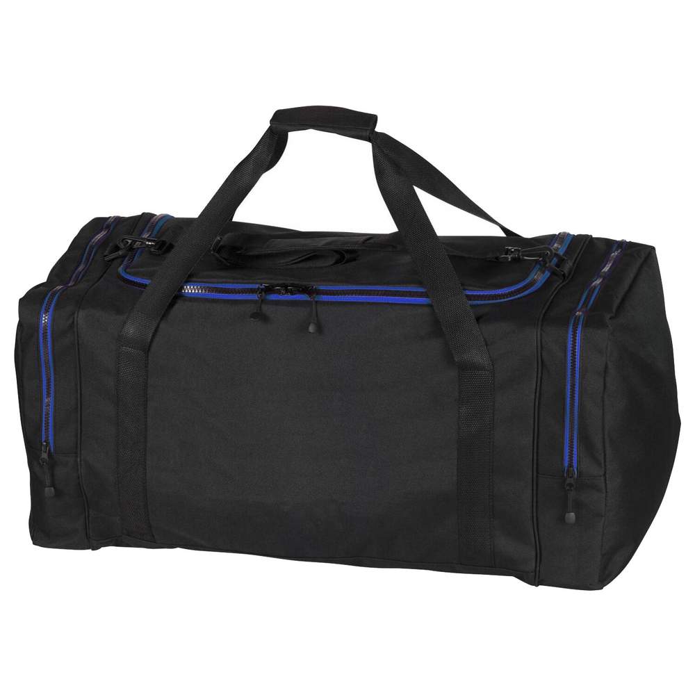 Grande borsa da viaggio e sport con una capacità di 85 litri. È dotata di maniglie robuste per un trasporto comodo a mano, oltre a una tracolla rimovibile rinforzata per un trasporto facilitato. La borsa dispone di due tasche laterali con zip, che permettono un accesso rapido agli effetti personali. Una tasca centrale con zip contrasto offre uno spazio di stoccaggio aggiuntivo. La sua composizione in 100% poliestere 600D con rivestimento PVC le conferisce una buona resistenza e durabilità.