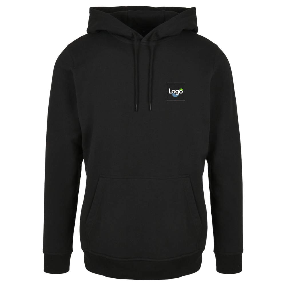 Il Basic Hoodie è l'articolo ideale per un totale relax. Il suo tessuto morbido in cotone misto lo rende super comodo da indossare. Le larghe coste sui polsini offrono ancora più comfort. È possibile regolare il cappuccio con un cordino di serraggio. Una grande tasca kanguro completa la felpa classica. Questa felpa è anche personalizzabile in ricamo, permettendo di aggiungere il proprio logo o immagine per un tocco unico.
