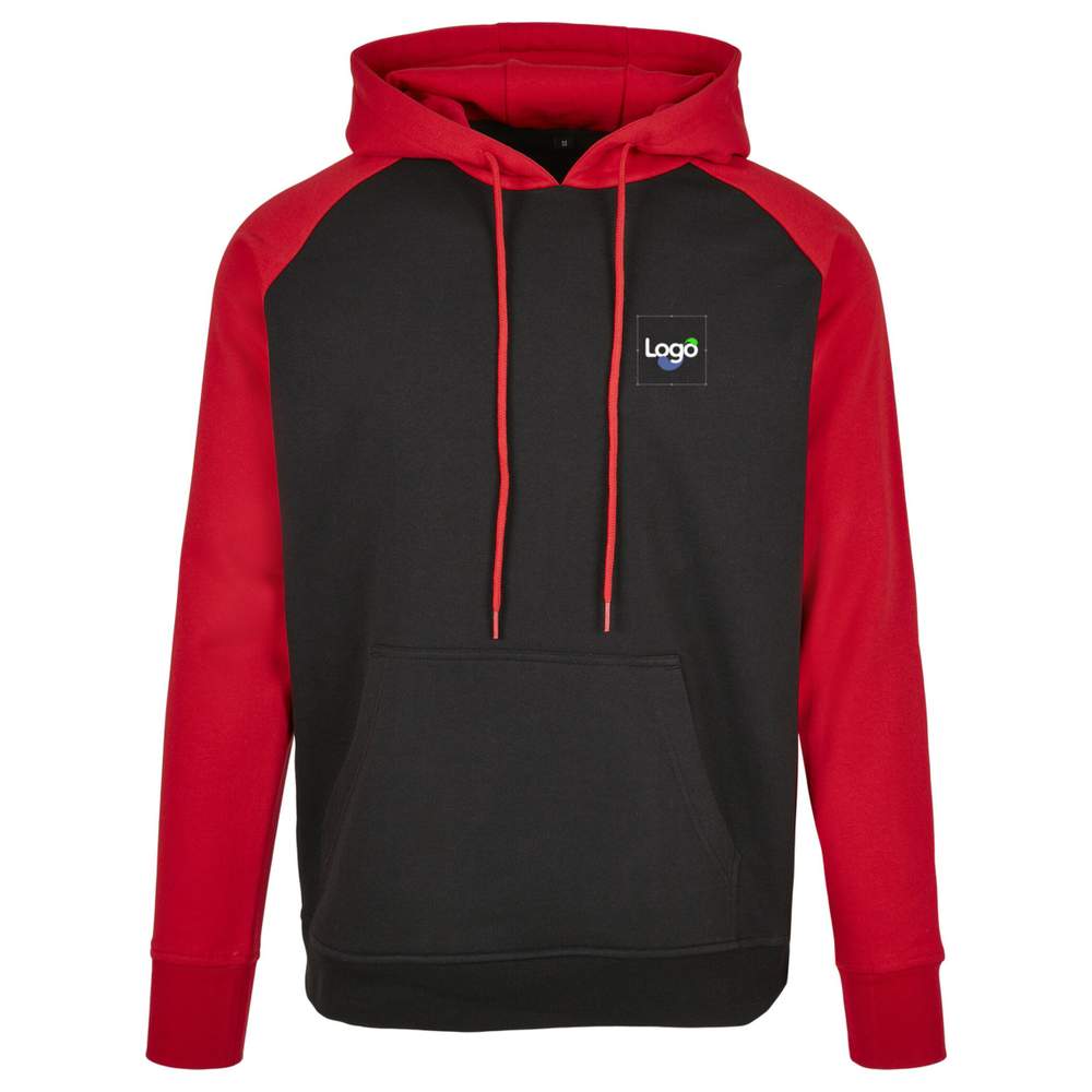Basic raglan hoody cotone bb005 personalizzazione - Black red