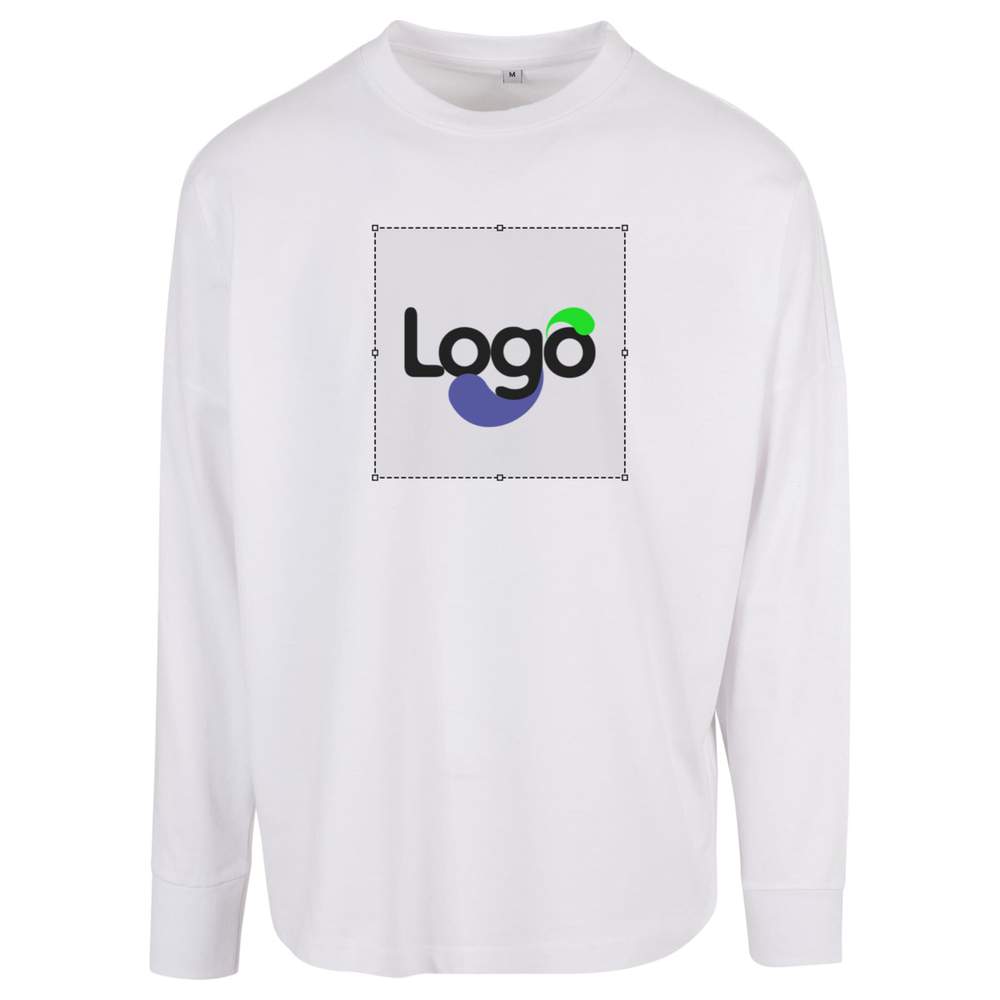 Felpa leggera a maniche lunghe per tutti i giorni. Questo modello è composto al 100% di cotone confortevole e ha una taglia leggermente oversize. È completato da un colletto a coste e spalle cadenti. Jersey semplice, taglio oversize. Possibilità di personalizzazione con ricamo.