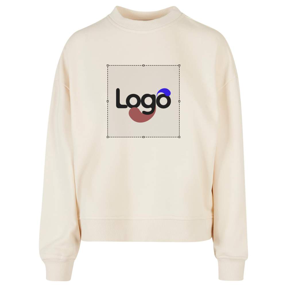 Questa felpa per donna è un classico semplice con una vestibilità oversize confortevole e spalle sovradimensionate. Il suo materiale composto da cotone e poliestere le assicura un comfort ottimale. Collo alto a coste. Ampia fascia a coste ai polsi e alla vita. Questo indumento è personalizzabile, consentendo l'aggiunta del proprio logo o dei propri visual con ricamo. Composizione: 65% cotone, 35% poliestere