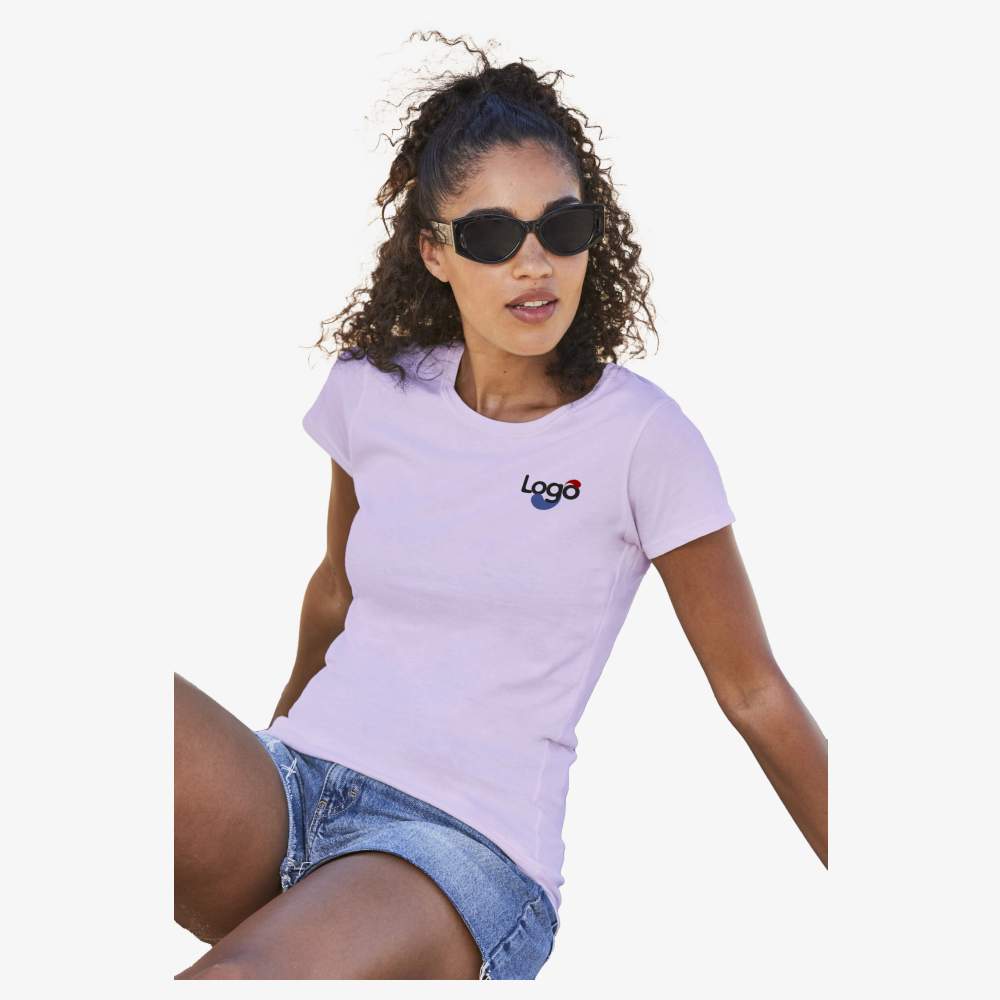 Questa maglietta a maniche corte per donna offre una vestibilità aderente e femminile grazie alle cuciture laterali. Il suo tocco morbido e il colletto basso in costina 1x1 garantiscono un comfort ottimale. La striscia di rinforzo sul retro del collo, dello stesso tessuto, ne aumenta la durabilità. L'etichetta rimovibile permette una personalizzazione facile. Composizione: 100% cotone cardato filato ad anello. Tranne colore Grigio Chiné: 97% cotone, 3% poliestere / Athletic Chiné: 90% cotone, 10% poliestere riciclato.