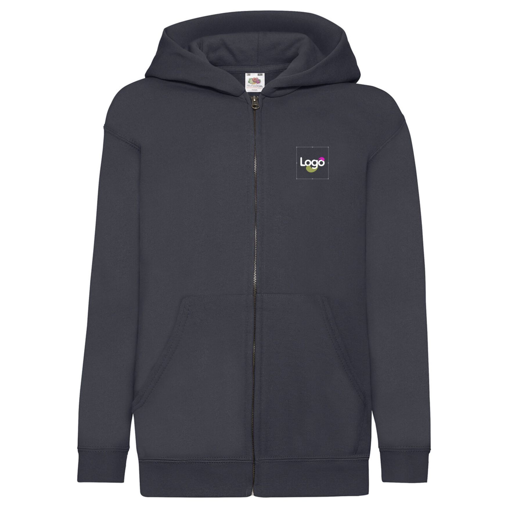 Felpa con cappuccio classica per bambini Fruit of the Loom, realizzata in cotone/polyester. Questo modello offre un comfort ottimale grazie alla banda semplice jersey. La chiusura lampo coperta facilita l'impressione e la personalizzazione. Il cappuccio imbottito senza cordino risponde alle normative di sicurezza per gli abiti dei bambini. È dotato di 2 tasche frontali e bordi elastici in vita e ai polsini in cotone/lycra® per una tenuta regolabile. Questa felpa è personalizzabile con ricamo o stampa del logo.