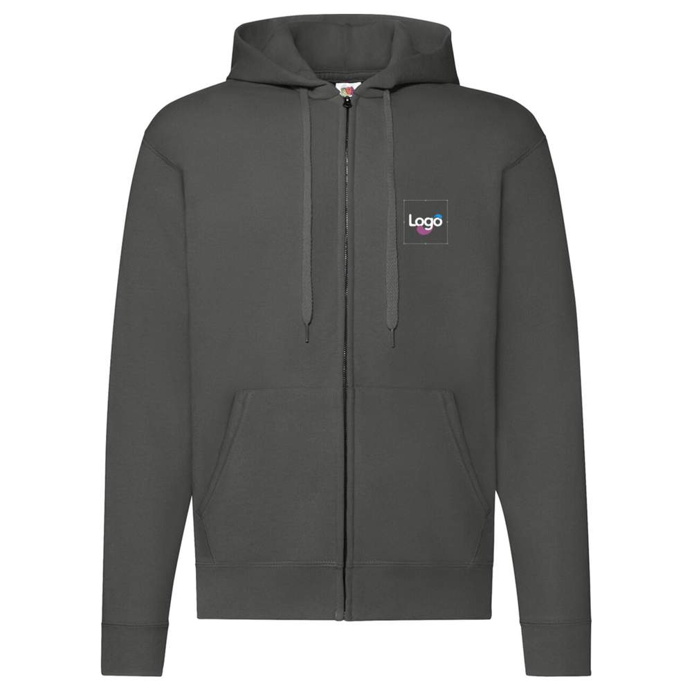 Questa felpa con cappuccio Classic di Fruit of the Loom è realizzata al Fil Belcoro®. È dotata di zip invisibile, cappuccio imbottito e cordone piatto tono su tono. Dispone di due tasche frontali e polsini e vita in cotone/Lycra® per una migliore tenuta. Questa felpa è ideale per la personalizzazione con ricamo o stampa del logo.