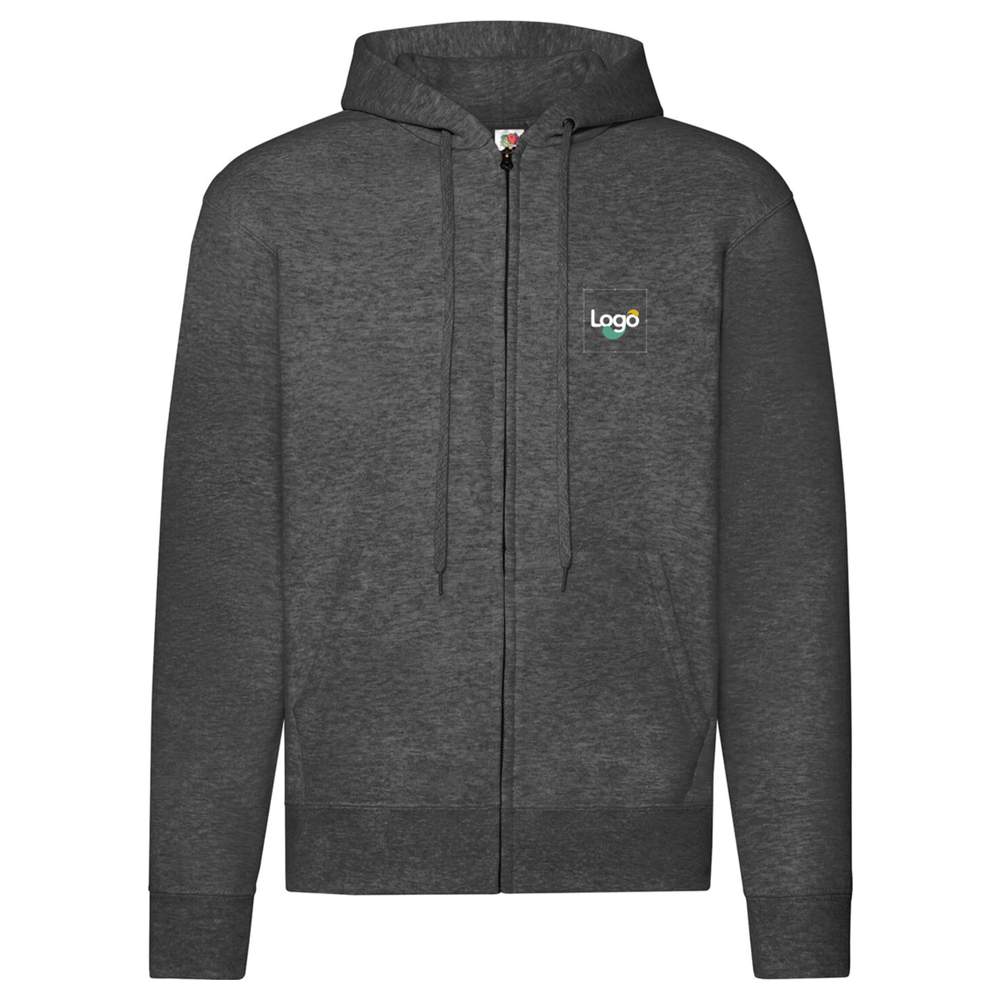 Questa felpa con cappuccio Classic di Fruit of the Loom è realizzata al Fil Belcoro®. È dotata di zip invisibile, cappuccio imbottito e cordone piatto tono su tono. Dispone di due tasche frontali e polsini e vita in cotone/Lycra® per una migliore tenuta. Questa felpa è ideale per la personalizzazione con ricamo o stampa del logo.