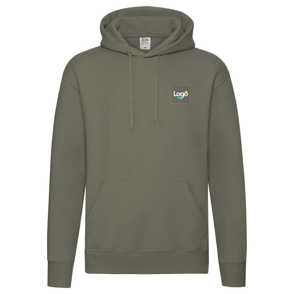 La felpa con cappuccio Premium hooded sweat FRUIT OF THE LOOM 62-152-0 è realizzata al 70% in cotone ringspun e al 30% in poliestere per un comfort ottimale e una durabilità accresciuta. È dotata di cappuccio imbottito con cordino dello stesso colore, nonché di una tasca kangourou pratica. I bordi costati alla vita e alle maniche in cotone/elastan assicurano una perfetta tenuta. Questa felpa è ideale per la personalizzazione tramite ricamo o trasferimento.