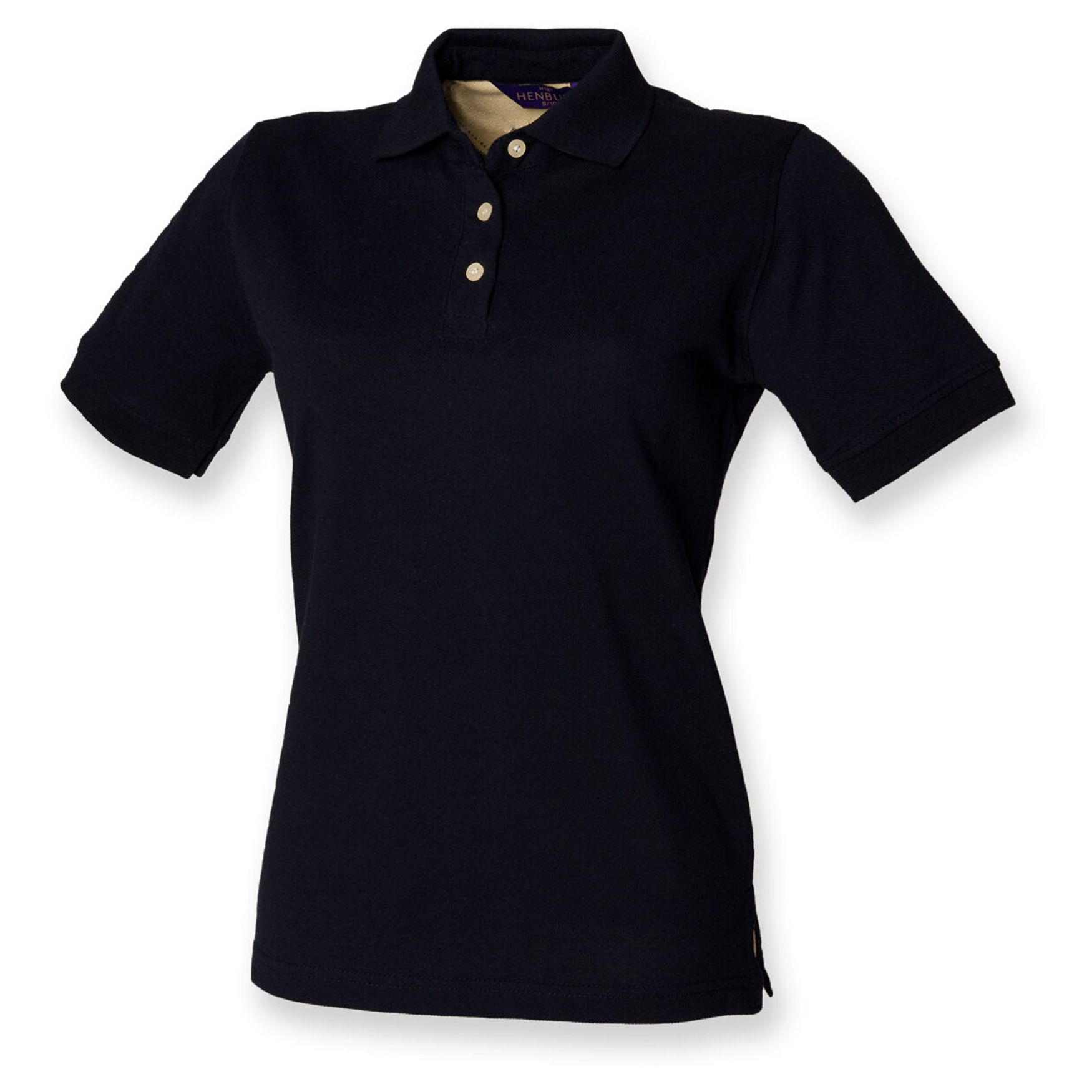 La polo donna Henbury he-h121 in cotone pettinato con taglio sagomato confortevole. Spacchetti laterali, supporto del colletto rinforzato, mezzaluna interna a contrasto e colletto con 3 bottoni effetto corno.