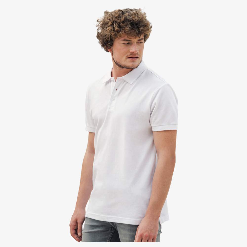 Questo polo per uomo presenta una maglia a coste in cotone pettinato e filato ad anello, offrendo un comfort e una durabilità apprezzabili. Il suo taglio moderno stretto assicura una silhouette di tendenza. Il girocollo e le fessure laterali sono rinforzati con nastro di tela per una tenuta ottimale. Una soluzione innovativa è integrata a livello del collo per un miglior mantenimento. Le estremità del collo e delle maniche sono confezionate in maglia a coste 1x1. È dotato di una patta a tre bottoni con un dettaglio tono su tono. Senza etichetta visibile, integra un'etichetta in tessuto Fair4All nella cucitura di sinistra. Il polo è pretraattato per limitare la riduzione e la formazione di pelucchi. Composizione: 100% cotone. Taglio: Stretto. Collo: Rinforzato con nastro di tela. Maniche: Maglia a coste 1x1