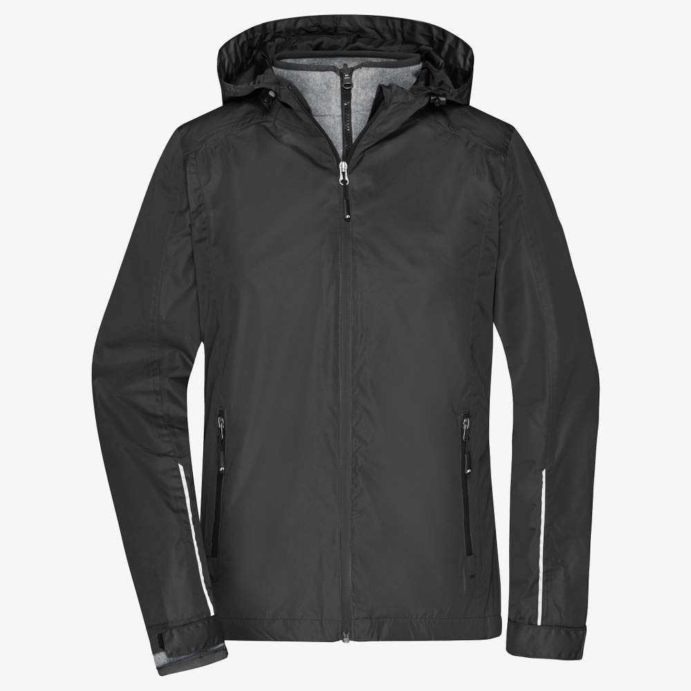 Giacca funzionale a doppio strato per donna, leggermente aderente, 3 stili di indossamento, polivalente. Giacca esterna: resistente al vento e impermeabile a 3 strati con membrana in TPU (colonna d'acqua di 5000 mm), traspirante, permeabile al vapore acqueo (5000 g/24 h). Cuciture impermeabili. Resistente all'acqua e alla sporcizia grazie alla finitura BIONIC-FINISH®ECO. Cappuccio regolabile, cerniera frontale coperta con mento protettivo. Possiede 2 tasche laterali con zip e 1 tasca interna. Tutte le cerniere sono impermeabili. Dotata di dettagli eleganti e riflettenti sulle maniche e nella schiena nonché una zip per la decorazione nella schiena. Giacca interna in pile: giacca in pile facile da mantenere con bordo contrastante, abbinata alla giacca esterna. Possiede due tasche laterali e un colletto alto. Composizione: 100% poliestere. Possibilità di personalizzazione con ricamo per un marchio durevole e di qualità.
