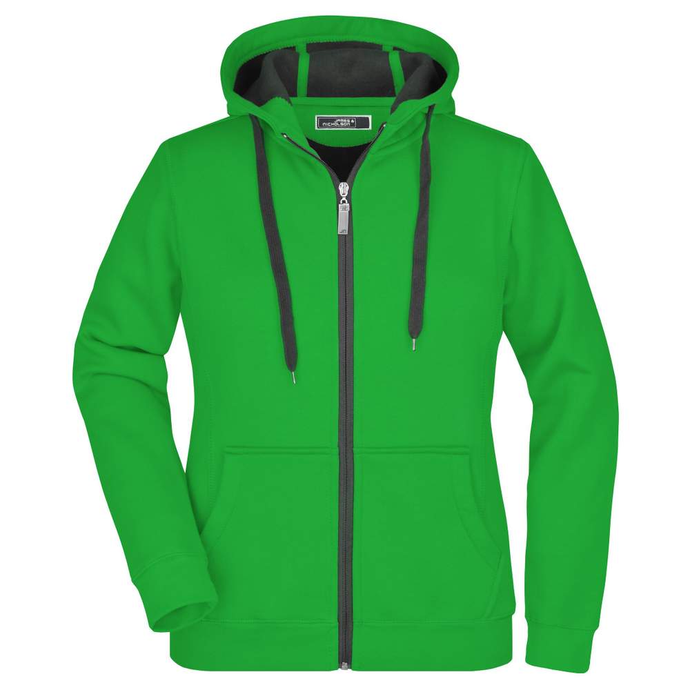 Questa giacca double face per donna unisce comfort e stile. Realizzata con tessuto esterno in cotone e interno in polare, offre una sensazione di morbidezza e calore. Il suo taglio femminile e la chiusura integrale garantiscono un adattamento ottimale. È dotata di un cordoncino di regolazione, di un cappuccio, di un colletto interno e di una tasca a marsupio. I polsini e il fondo del corpo sono bordati di costine con elastan per una tenuta comoda. Questa giacca è personalizzabile con ricamo, ideale per esporre il vostro logo o il vostro disegno.