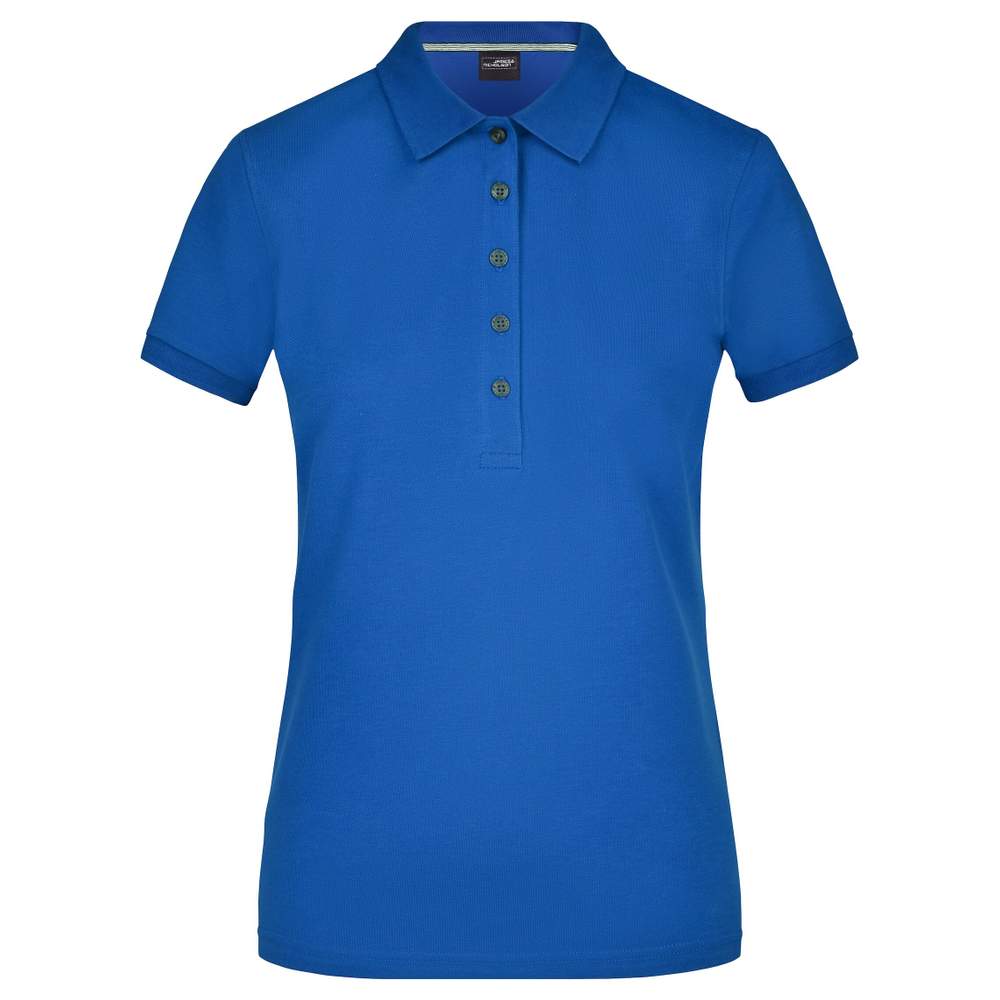 Polo donna, taglio slim fit, confezionato in cotone Pima. Questo tessuto, caratterizzato dalle sue fibre lunghe e fini, offre una superficie di qualità. Il colletto e i polsini sono in maglia. Questo polo è dotato di cinque bottoni color titanio.