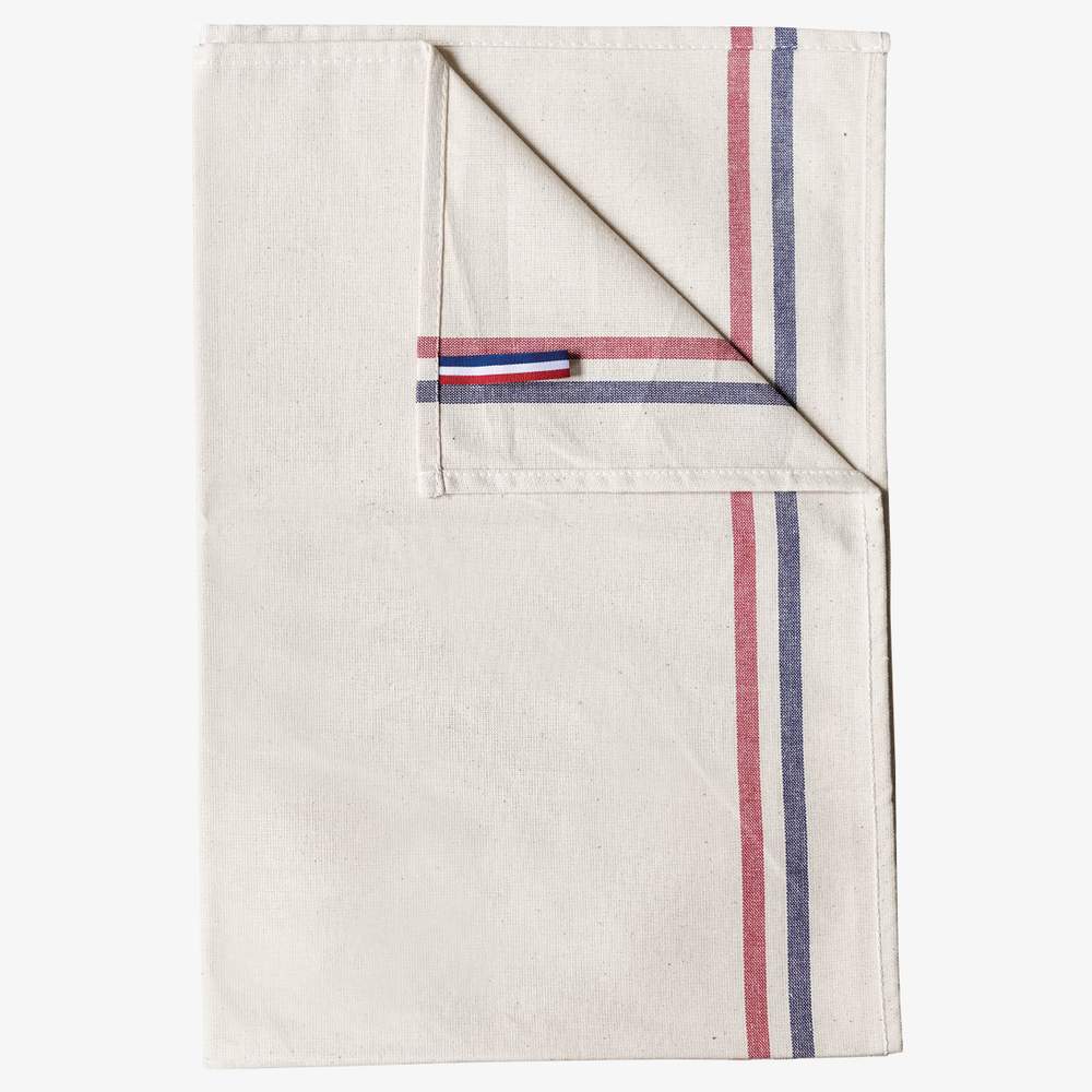 Struttura per asciugare i piatti in tessuto di cotone, presenta due righe su ogni lato. È dotato di un'etichetta tricolore che permette di appenderlo facilmente. Questo prodotto beneficia dell'etichetta "Origine Francia Garantita - Prodotto in Bretagna".
