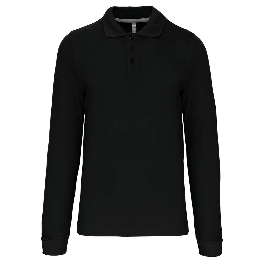 Polo maniche lunghe uomo in cotone piqué maglia, che offre comfort e stile. Questo polo presenta un colletto a coste, una patta di bottonatura con 3 bottoni e polsini a coste per un'adattamento ottimale. La finitura doppia cucitura alla base del capo garantisce una durata maggiore.