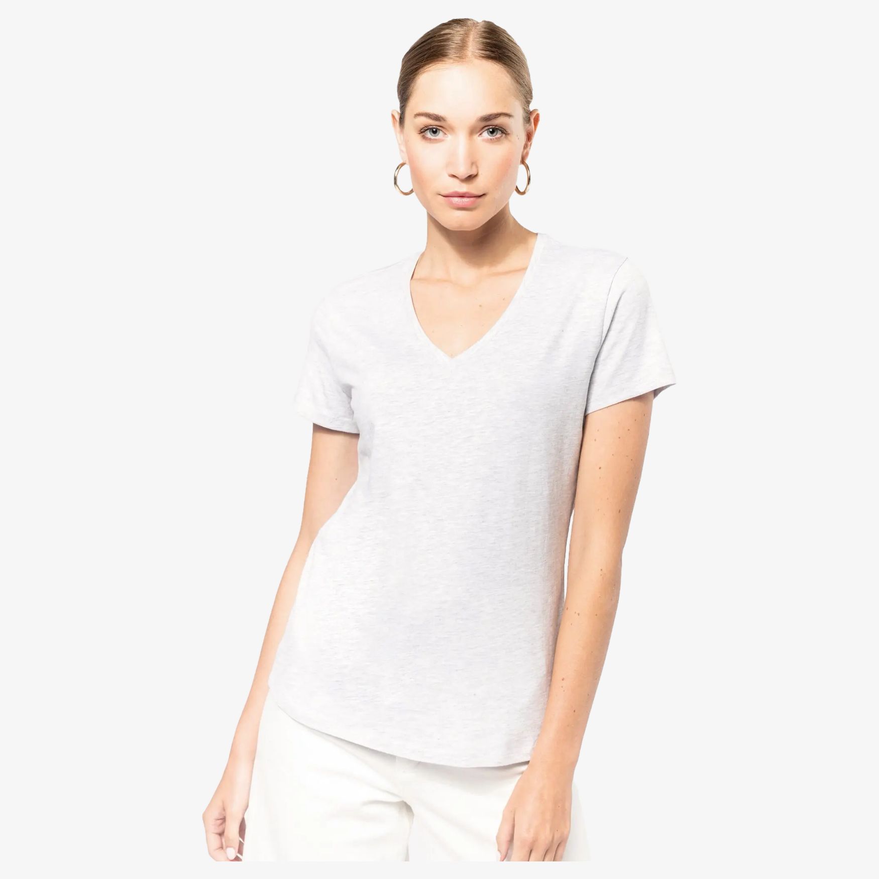 K381 - Maglietta a maniche corte col v donna k381 - ash_heather