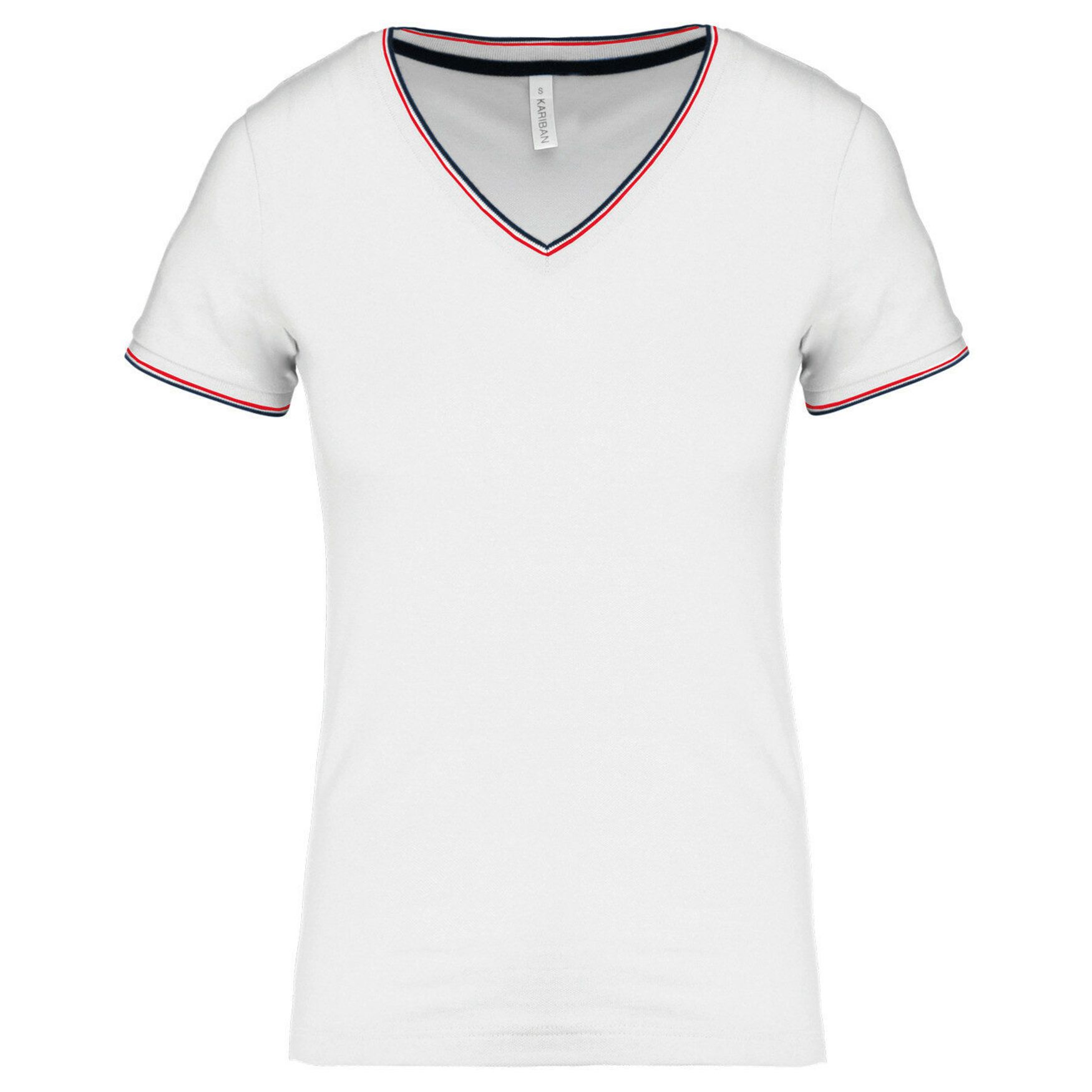K394 - Maglietta a costine collo v donna k394 - white/navy/red