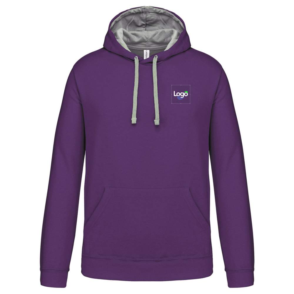 Felpa con cappuccio bicolore k446 personalizzazione - Purple oxford grey