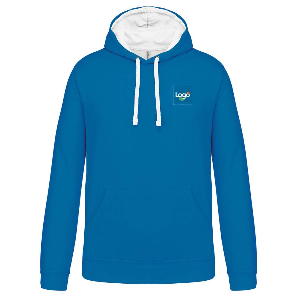 Felpa con cappuccio bicolore k446 personalizzazione - Tropical blue white
