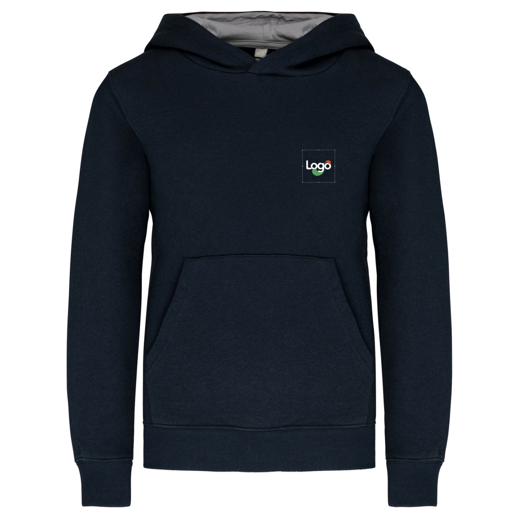Felpa con cappuccio contrastata bambino k453 personalizzazione - Navy fine grey