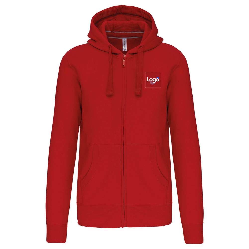 Felpa con cappuccio zip cotone k454 personalizzazione - Red