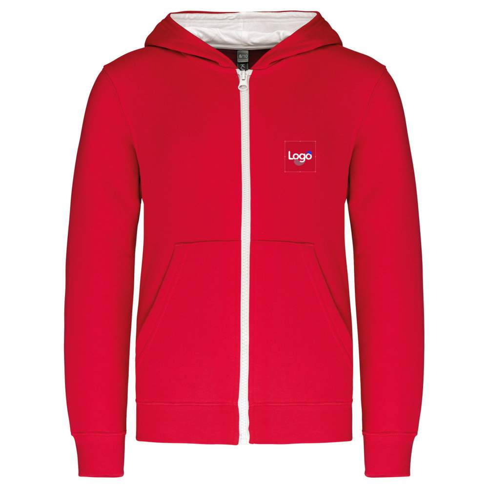 K486 - Felpa con cerniera e cappuccio per bambini k486 personalizzazione - red/white