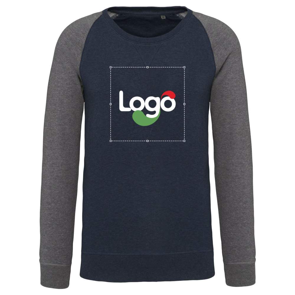 Felpa bio bicolore collo rotondo maniche raglan uomo personalizzazione k491 - French navy heather grey heather