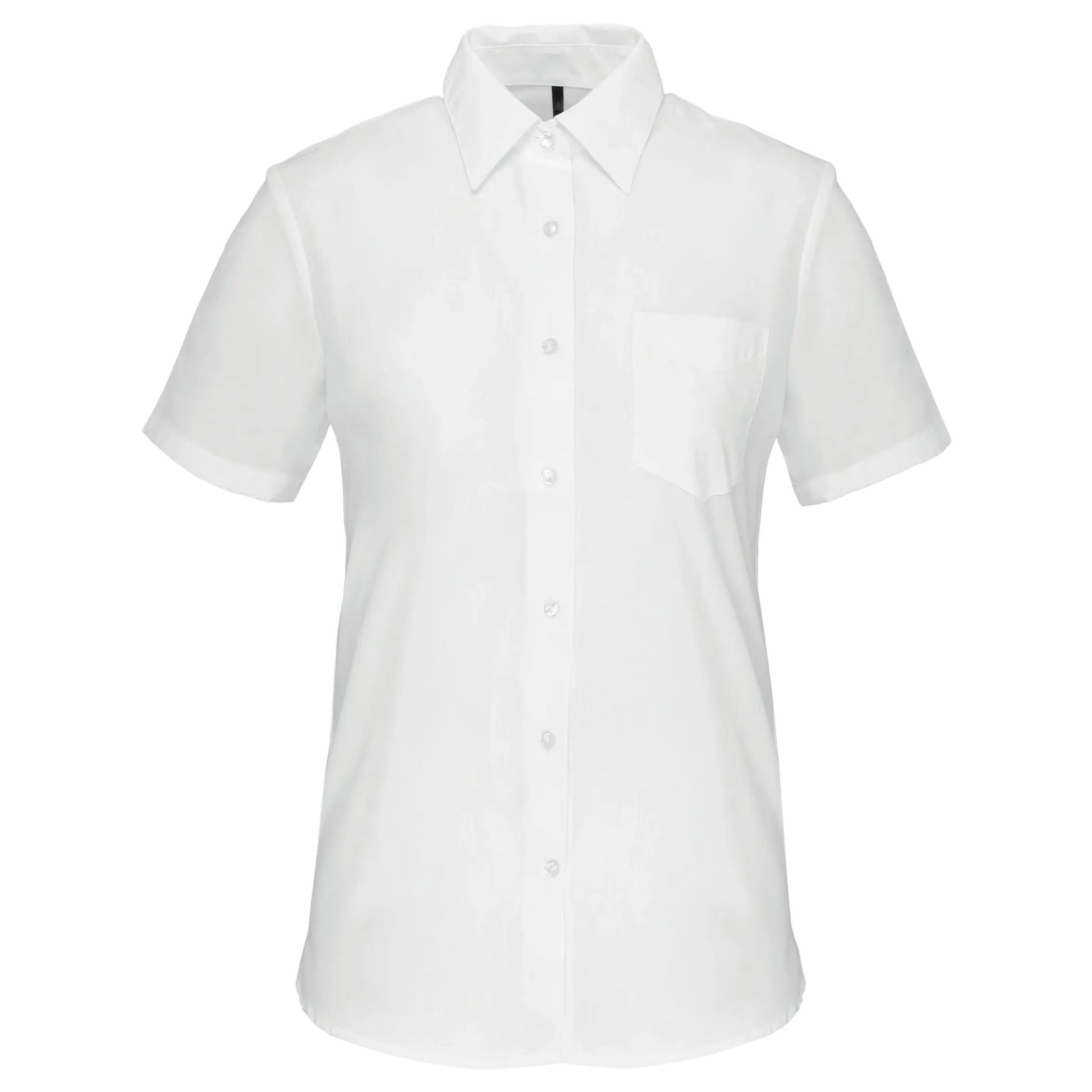 Questa camicia per donna è realizzata con una miscela di poliestere e cotone, offrendo comfort ottimale e buona tenuta. Presenta un taglio classico con maniche corte, ideale per le giornate calde o abiti casual. La sua progettazione accurata garantisce una durabilità accresciuta. È dotata di colletto non abbottonato e bottoni a tinta unita per un aspetto discreto ed elegante. Una tasca applicata sul petto aggiunge un tocco pratico.