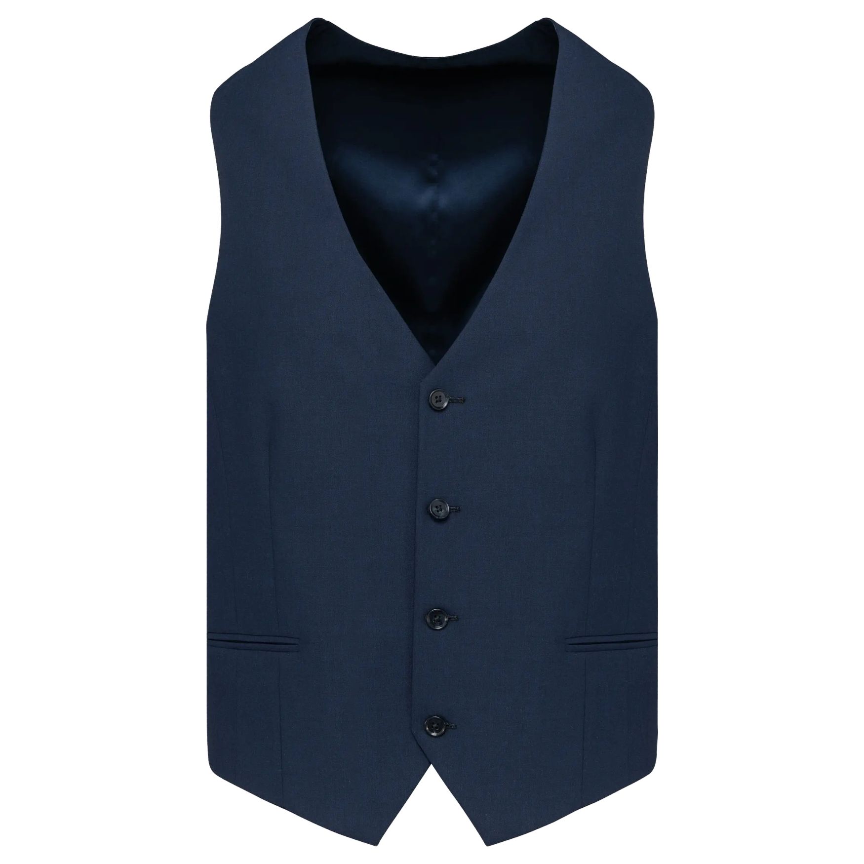Il gilet homme dal taglio aderente è adatto per abbigliamento da lavoro o per eventi. Chiusura a quattro bottoni tono su tono, tasche a filetto e cinturino regolabile sul retro. Senza etichetta del marchio, con chip taglia per la personalizzazione. Composizione: 50% poliestere, 23% viscosa, 22% lana, 5% elastan. Altro materiale: twill 100% poliestere.