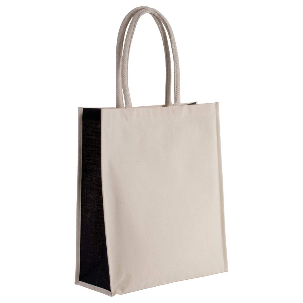 Sacchetto a mano in cotone / juta - ki0253 - Natural black