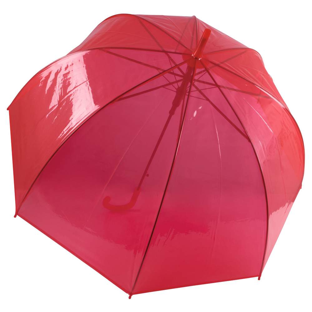 Questo ombrello trasparente offre una protezione efficace contro la pioggia grazie alla sua costruzione in elastomero di poliolefina (POE). Il suo meccanismo di apertura automatica permette un utilizzo facile e rapido. È dotato di costole in metallo nero per una maggiore resistenza e di un'asta in metallo spessore 8 mm che assicura una buona stabilità. L'impugnatura arrotondata in polipropilene offre una presa confortevole ed ergonomica.