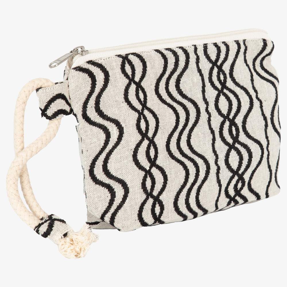 Questa busta con zip è realizzata con materiali riciclati, contribuendo a un approccio eco-responsabile. L'interno è foderato con un tessuto di colore contrastante per una finitura accurata. Una dragona in corda di cotone permette un trasporto facile e pratico. La tessitura jacquard conferisce una texture unica e distintiva a ogni busta. Le dimensioni della busta sono di 23 x 5 x 14 cm, offrendo spazio sufficiente per riporre vari effetti personali. La composizione del tessuto è di 67% cotone riciclato, 30% poliestere riciclato e 3% altre fibre, garantendo una certa durabilità e un comfort di utilizzo. La busta è certificata GRS (Global Recycled Standard) da Ecocert Greenlife.