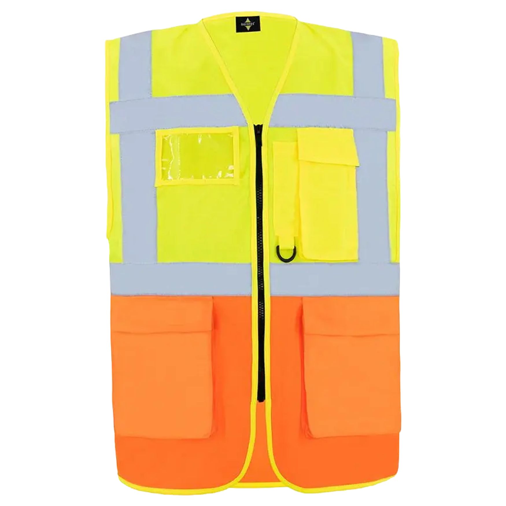 Il Comfort Hamburg è un gilet di sicurezza multifunzionale con tasche con patta e chiusura con banda auto-agganciante. La sua struttura senza metallo è adatta a diversi usi. Le bande riflettenti posizionate in orizzontale e sulle spalle migliorano la visibilità negli ambienti interessati.